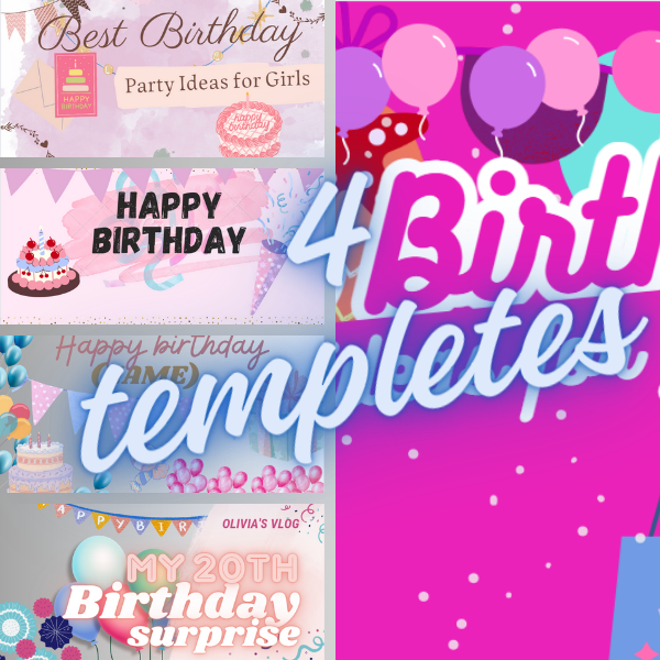 Editable Birthday card bindle | 4 templates one free | party ideas for girls